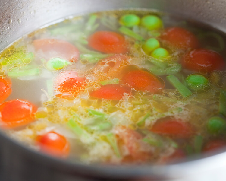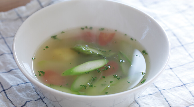 今回は野菜と相性のいい茅乃舎の「鶏だし」を使ったスープです。