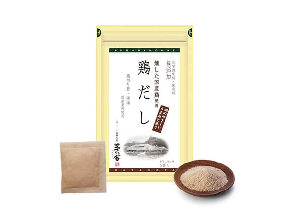 「しっかりしたうまみがある鶏だしなら、調味料は加えず、だしだけでも十分」と広沢さん。国産鶏の削り節を粉末にしているので、鶏肉そのもののうまみが生きています。素材がシンプルなので味や香りにクセがなく、やさしく奥行きのある味わいに仕上がります。