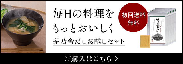 料理のうまみの基礎をつくる「茅乃舎 黄金比のだし」は、味が決まりやすいよう下味をつけた「茅乃舎だし」とは少し性格が異なり、ご自身で味を調えていただくことで料理が完成します。お好みの調味料でご家庭の味に仕上げてください。