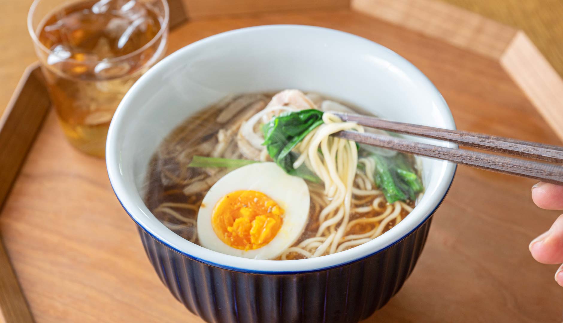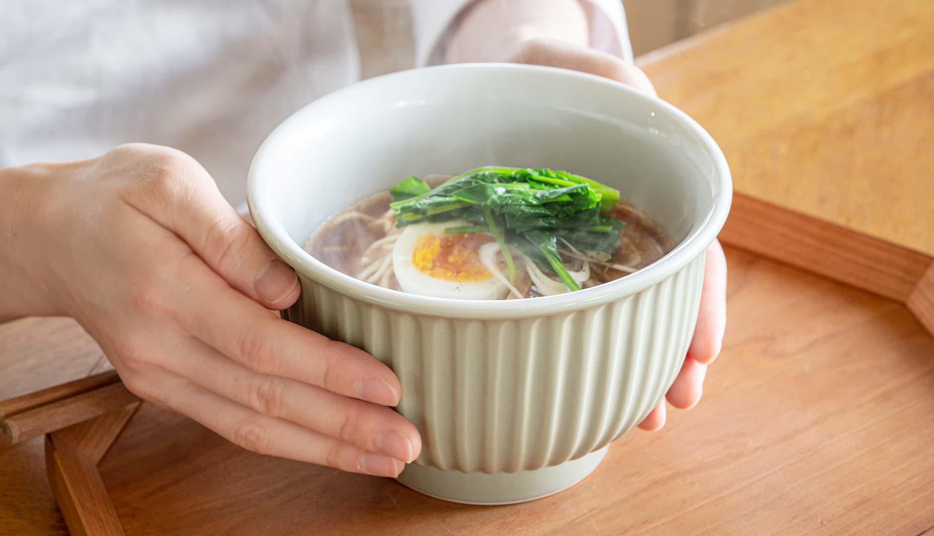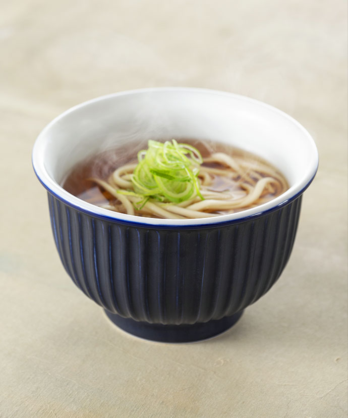 ラーメンはもちろんフォーなどのエスニック料理にもお似合い。美しい白が清涼感たっぷりに引き立てます。