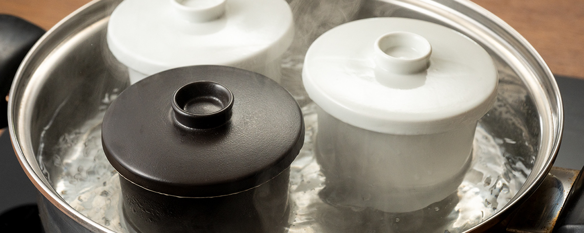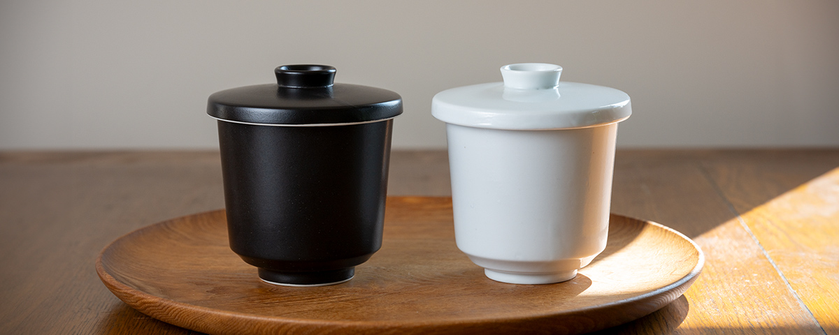 だしを楽しむ料理の代表格、茶碗蒸しを美味しく手軽につくりたい。そんなお声にお応えして、蓋付きの陶器碗を誂えました。九州の陶磁器一大産地、佐賀・有田に伝わる機能美に改良を加えて、佐賀・伊万里の窯元が手がけるこっくりとした白磁で仕上げています。