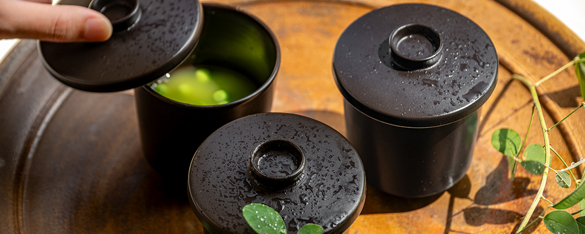 蓋付碗は、職人がひとつずつ丁寧に手作業で仕上げています。素材の性質や工程上の理由から、色合いや器の形に個体差がございます。手仕事ならではの味わいとしてお楽しみいただけますと幸いです。