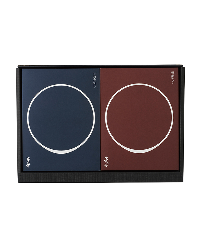 - 円相をあしらった贈答箱の中に、18袋入の茅乃舎だしとお料理読本(レシピ集)が入っております。焼きあごなど4つの素材を粉末にしたご家庭用本格だしです。