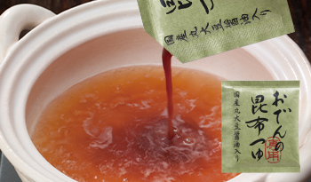 国産丸大豆醤油と二段熟成醤油を使い、国産昆布粉を加えた「昆布つゆ」で深いうまみを加えます。