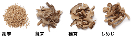 - 焙煎された胡麻の香ばしさ、五種のきのこの違いなど。香りまで存分に味わっていただきたいと思います。