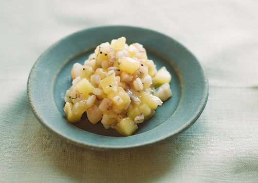 柚子皮をすりつぶし、柚子果汁と一緒に味噌に加えた爽やかな酢味噌です。まろやかでほのかな甘みがあります。魚介類や海藻サラダ、蒸し野菜に。