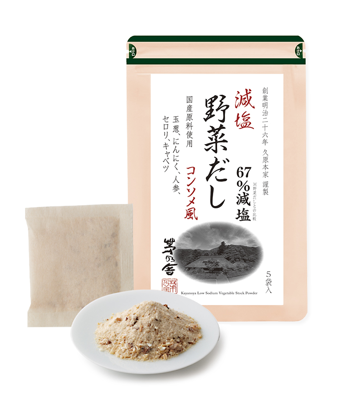 「野菜だし」と同じ素材の『減塩野菜だし』。やさしいうまみが特徴です。