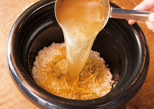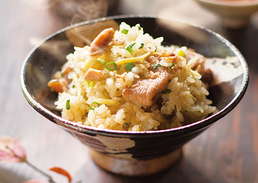 - 【B】で千切りにした生姜は、炊き込む前に塩をふってしばらくおくと、水けとともにえぐみが抜けて、ごはんが上品に仕上がります。