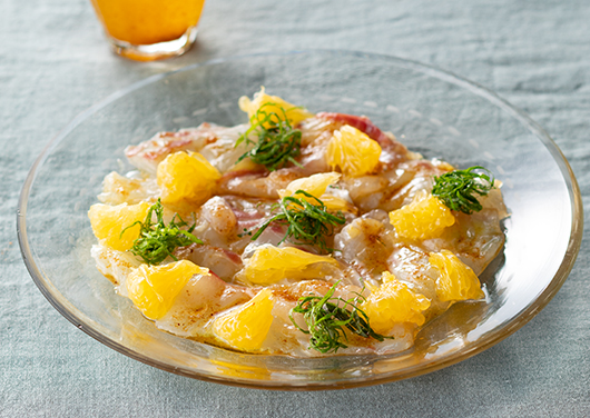 - 魚をそぎ切り、甘夏は食べやすい大きさに、青しそは千切りにする。