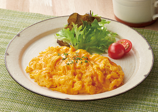 - フライパンでバターを熱し、弱火で1をかき混ぜながら加熱する。