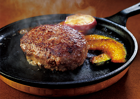 - 箸を入れると、ふわっとほどける柔らかさ。タネにだしを混ぜると、肉汁を閉じ込めたジューシーなハンバーグが作れます。