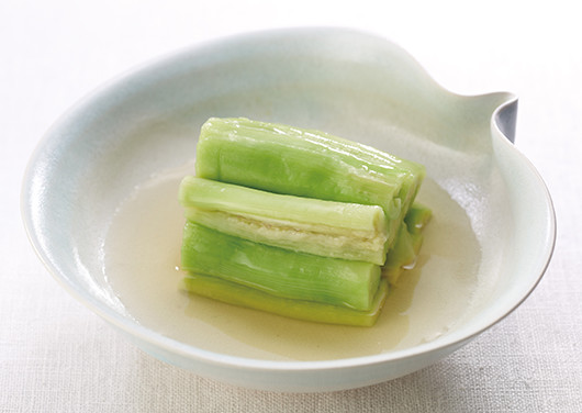 - 鍋に水と減塩 茅乃舎だしを入れ、火にかけ2〜3分煮出し、うす口醤油で味を調える。