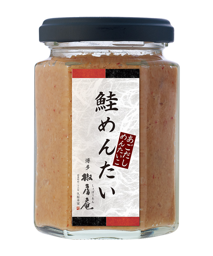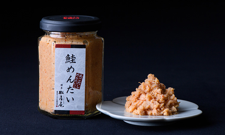 北海道産の鮭とたらこを原料に、博多の技で仕上げました。やわらかく手でほぐした鮭に、うまみ豊かなあごだしめんたいこをまぶした絶品珍味。