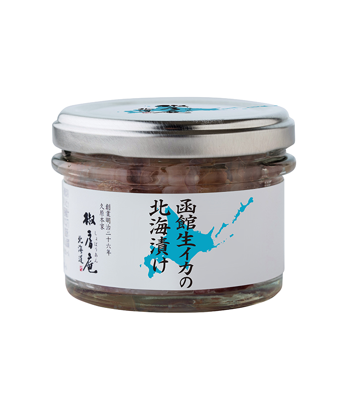 函館産スルメイカを生で使用。イカの味を引き立たせるために厳選した三種の昆布と合わせました。北海道のうまみが凝縮した特製の北海漬けです。