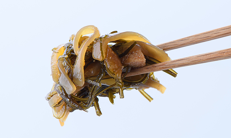 イカの味を引き立たせるために厳選した三種類の昆布、「猫足昆布」「がごめ昆布」「真昆布」に、さらに昆布だしめんたいこを合わせました。