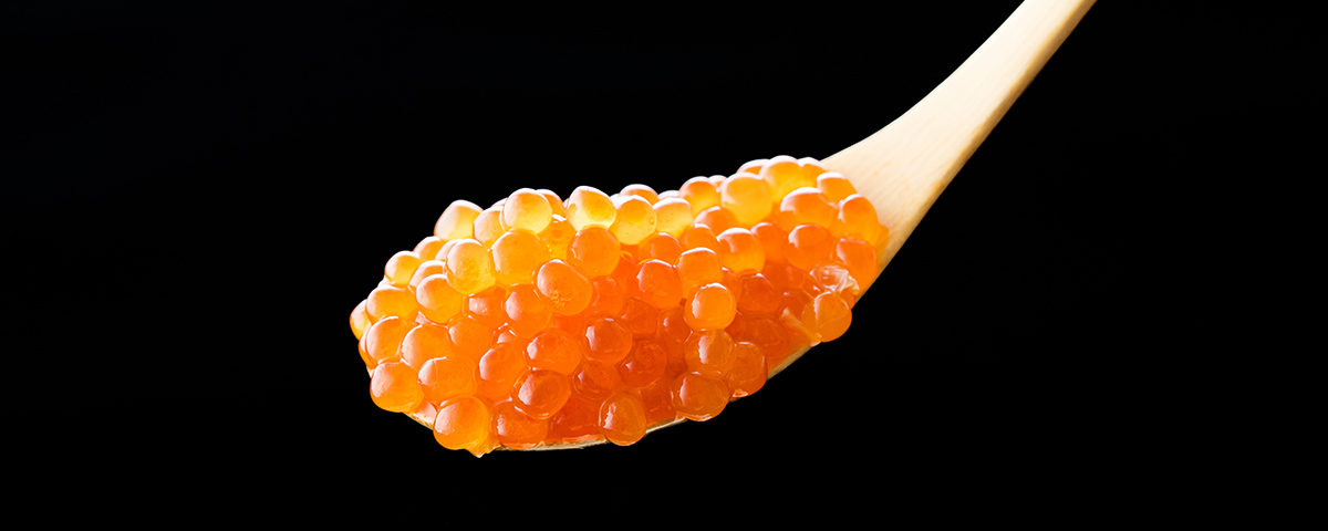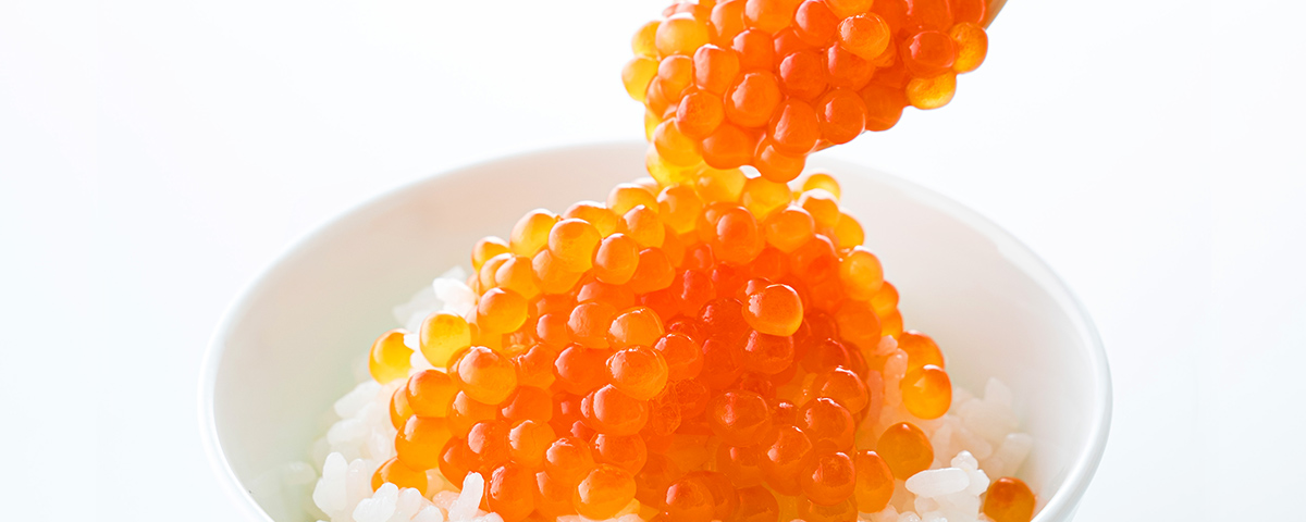 鮮度の高い完熟いくらは皮が薄く、ほどよい食感で口どけもよく、目にも透き通るような美しさ。