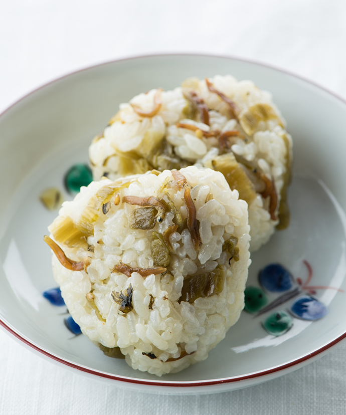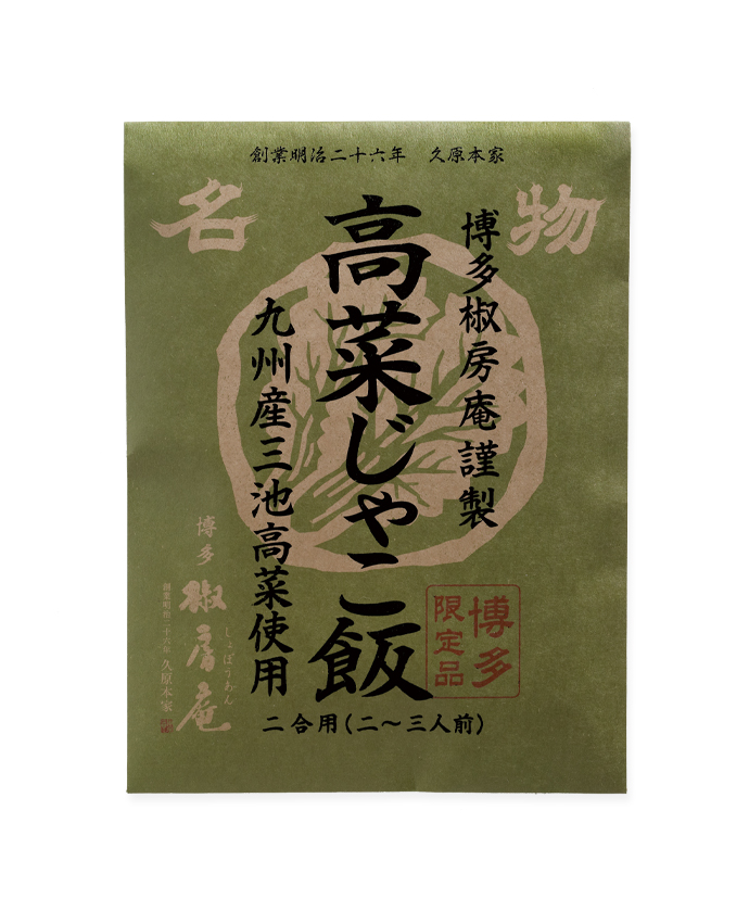 高菜漬け(国内製造)、たん白加水分解物、植物油脂(綿実油、ごま油)、ちりめんじゃこ、発酵調味料、砂糖、酵母エキス、食塩、たん白自己消化物、ごま、焼きあごだし、香辛料/ウコン色素、(一部に小麦・ごまを含む)