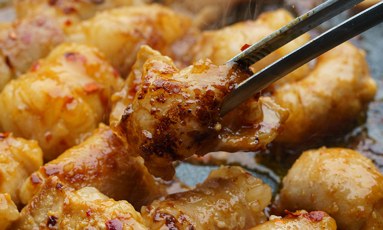 「もつ焼き専用だれ」は、2種類の国産味噌をブレンドし、生姜・にんにく・ねぎ・唐辛子・すりごまを合わせた、椒房庵がこだわり抜いた特製だれ。もつの香ばしさに、コクとうまみが濃厚な味噌だれが、とろけるようにやわらかく新鮮な「国産牛もつ」2種と絡み合い食欲を刺激します。