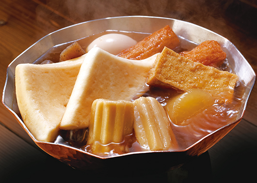 東京のおでんといえば、黒っぽくて甘辛いつゆが持ち味。具材は、他の地域ではなじみの薄い「ちくわぶ」と「はんぺん」の存在が際立ちます。関西では、おでんのことを関東煮(かんとだき)と呼ぶことも。