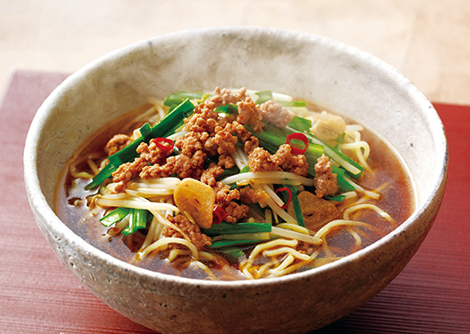 豚ひき肉・ニラ・もやしがたっぷり入ったピリ辛ラーメン。台湾ラーメンという名前ですが、れっきとした名古屋発祥の料理です。