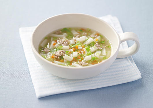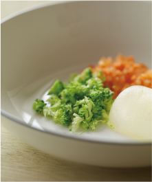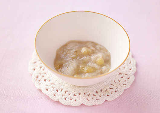 すりつぶしたり、水分量でかたさを調整したり、成長に合わせてつくりましょう。