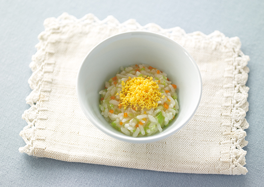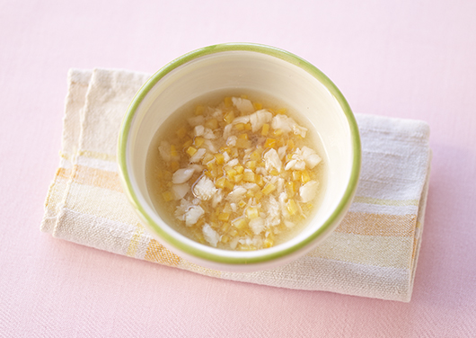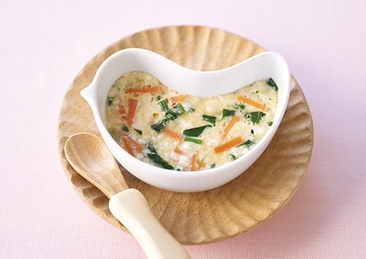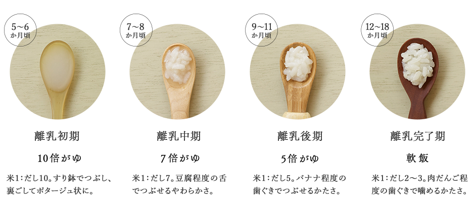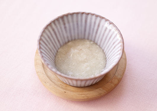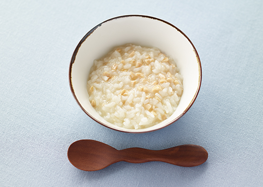 赤ちゃんが食事に慣れてきたら、米とだしで炊いただしがゆをお試しください。