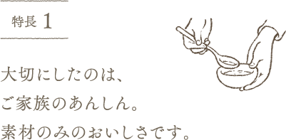 離乳食づくりを経験したおかあさん、おとうさん社員の意見を取り入れて開発した商品です。我が子を思う親ごころが詰まっています。