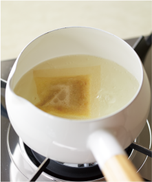だしパック1袋に水300~400ml。沸騰後、中火で4~5分煮出します。