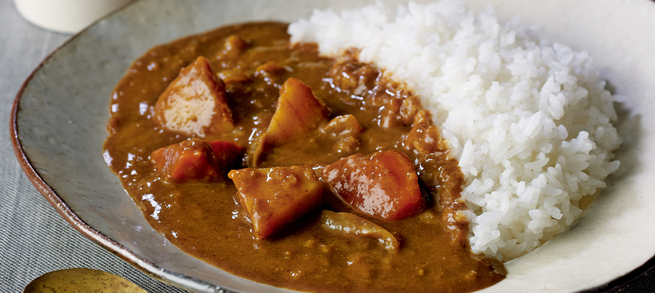 これからの季節、食卓に出番の増えるカレー。茅乃舎のカレーは、だしのうまみと自社独自ブレンドのスパイスをきかせ、味わい深く仕上げました。