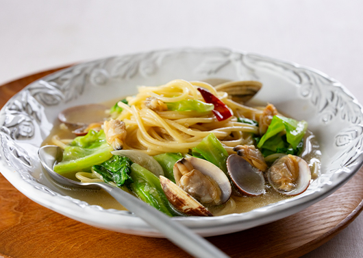 あさりのうまみと野菜だしの風味がとけた、絶品スープパスタ。キャベツは食感を残すため最後に加えましょう。フライパン一つでつくれます。