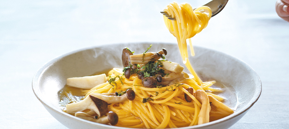 シンプルなオイルベースが、パスタの基本。オイル・にんにく・野菜だしだけでオイルソースを上手につくることができたら、具材をかえて、どんなパスタにも応用できます。