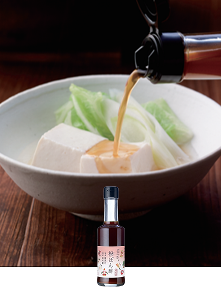 代々の繁栄を祈る縁起物「橙(だいだい)」で「めでた箱」限定ぽん酢をつくりました。ほんのり甘く仕上げた、ほかでは手に入らないぽん酢です。