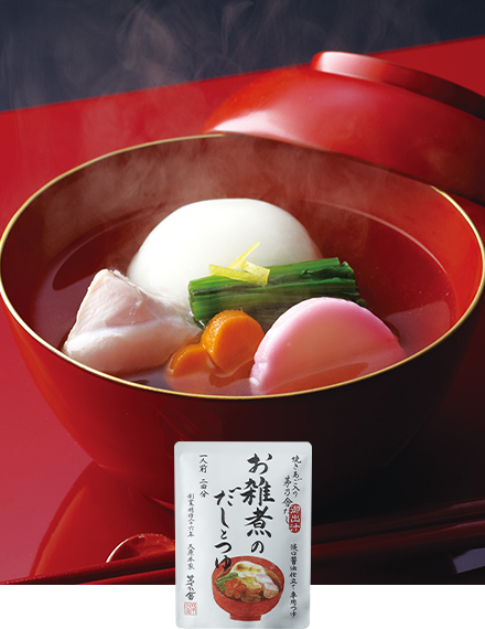 お正月に欠かせないお雑煮を茅乃舎だしと専用つゆで手軽に美味しく。具材を準備するだけで、すまし汁仕立ての上品なお雑煮がつくれます。