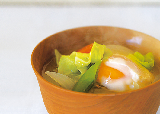 甘みとコクが際立つお味噌で、野菜たっぷりのお味噌汁を。卵を入れればよりまろやかに、栄養も満点です。