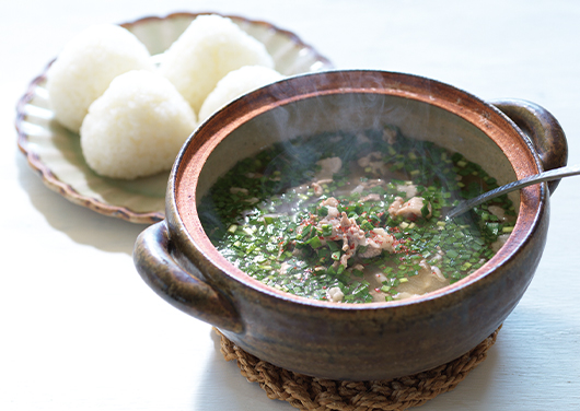 ニラとお肉を豪快に入れて、しっかりとお腹を満たすおかず味噌汁。思わず、お米と一緒にかき込みたくなるような肉肉しさを目指しましょう。