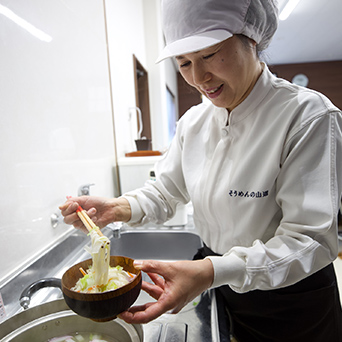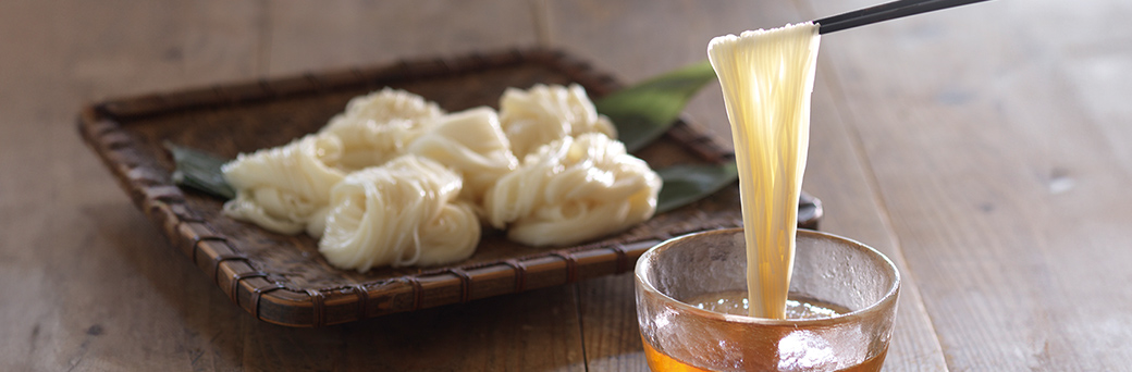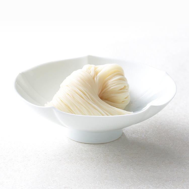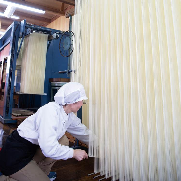細くてしなやかな麺は、もっちりとしながらも、歯切れよく、なめらかです。素麺づくりに最適な冬季に製造しています。