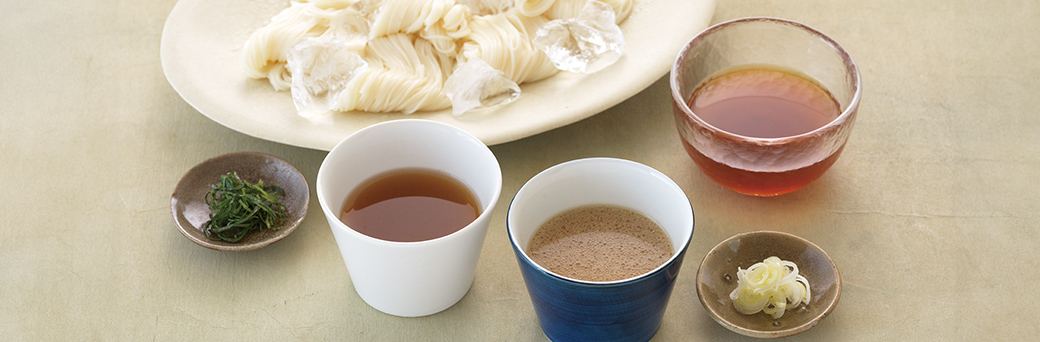 使用したのは、鰹節や焼きあご、昆布、宗田節、鯖節の5種。上質な素材で、ひとつひとつの抽出方法も工夫しています。その豊かな濃いだしに淡口醤油やみりんを加えて、すっきりした甘さの素麺つゆが完成しました。