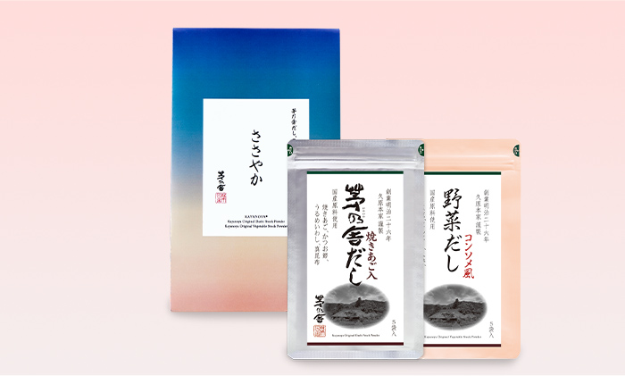 ちょっとしたお呼ばれの手土産、親しい方へのプレゼントに。商品を組み合わせて贈り物にできる「茅乃舎きんちゃく」。新たに選べるメッセージタグが登場しました。