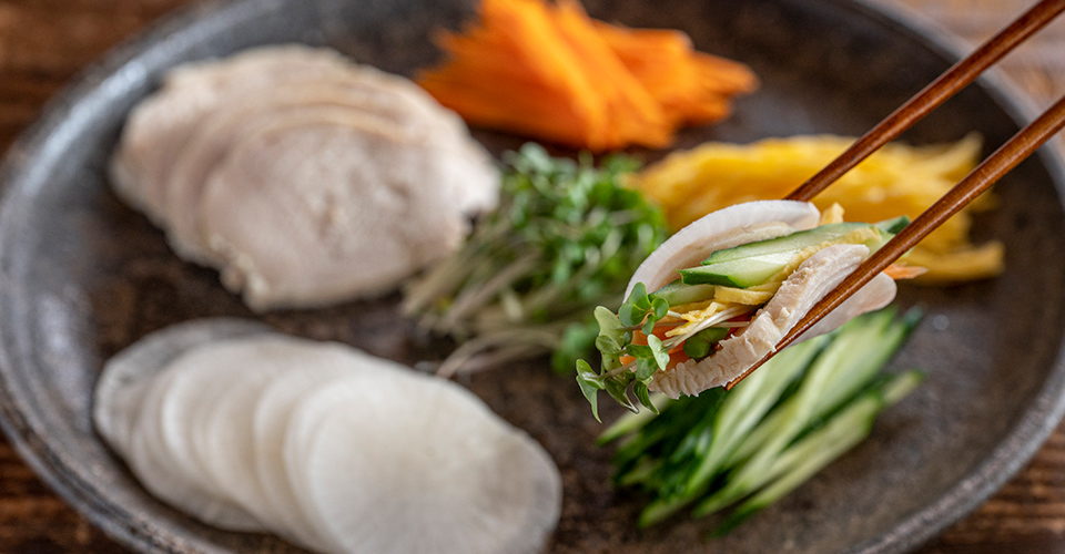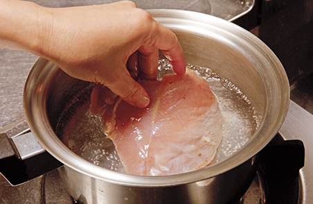 ※茹で汁は、鶏とだしのうまみが溶け出しているので、スープや雑炊に使うとおいしいです。