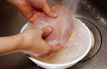 ②をさっと水で洗う。