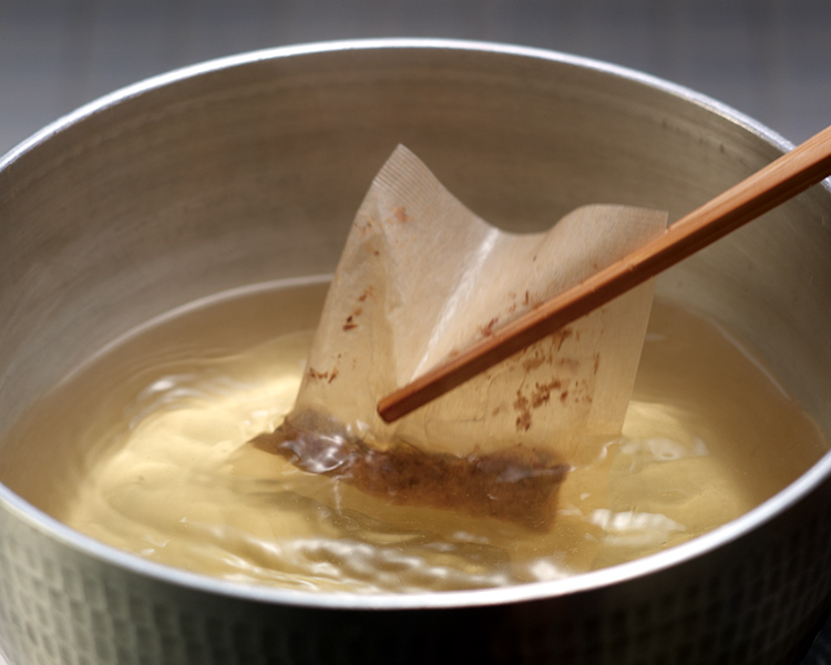 全体に水が染み込むよう、箸で袋を揺らすのがポイント。弱火で加熱すると上品に、強火だとやや濃い目に仕上がります。焼きあごの上品な風味を生かして、おうちで本格和食をお楽しみください。
