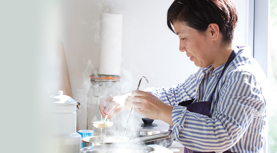 「スープがあればほっとする」という広沢さん。毎朝添える汁物は、煮出すだけのだしを使って、“本格だしを簡単に”が基本です。