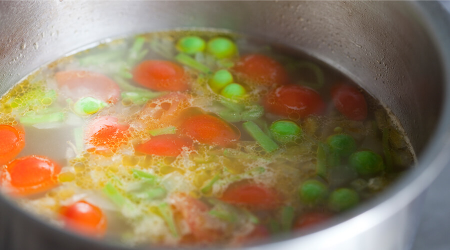 今回は野菜と相性のいい茅乃舎の「鶏だし」を使ったスープです。