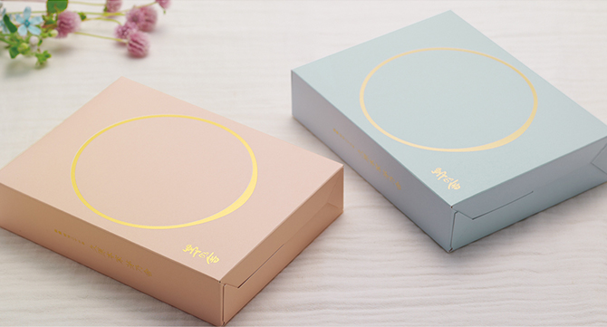 上品な金色の箔をあしらったそら色とさくら色のネット限定のお祝い箱です。