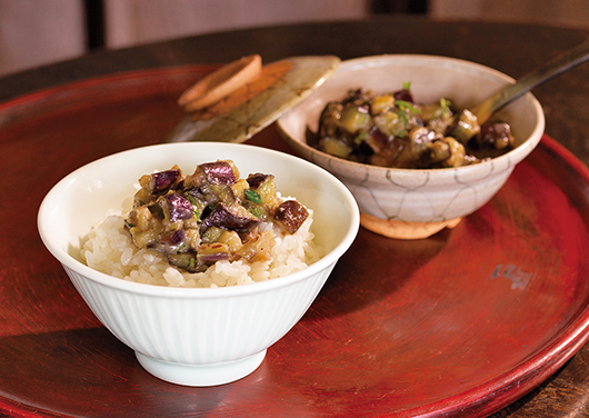 とろりとした食感の茄子に味噌のコクとだしのうまみが絡む、ごはんのおとも。お茶漬けでいただくのもおすすめです。