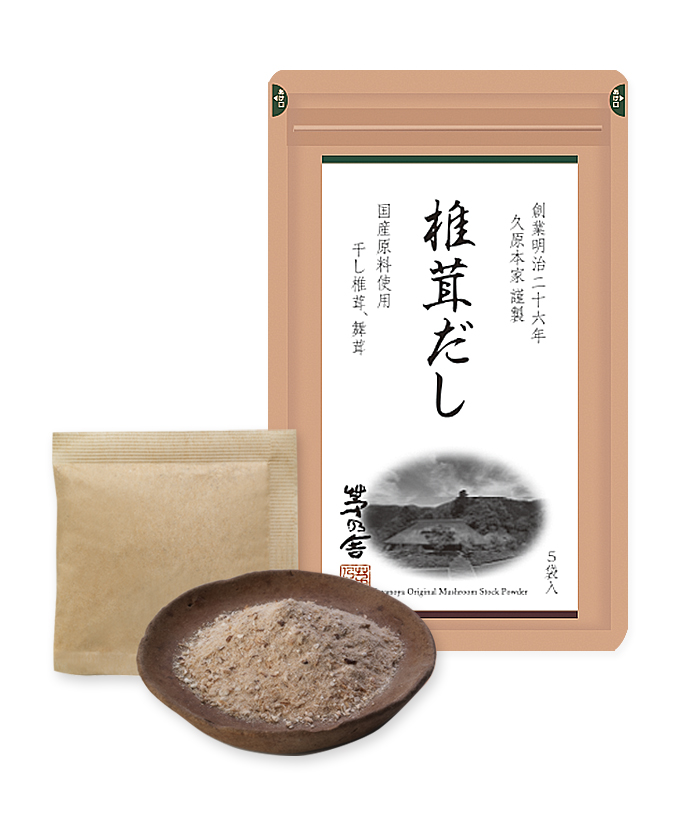 国産原木干し椎茸と干し舞茸を粉末にし、バランスよく配合。2種類のきのこの相乗効果で、広がりと厚みのある香りと味わいに仕上がっています。