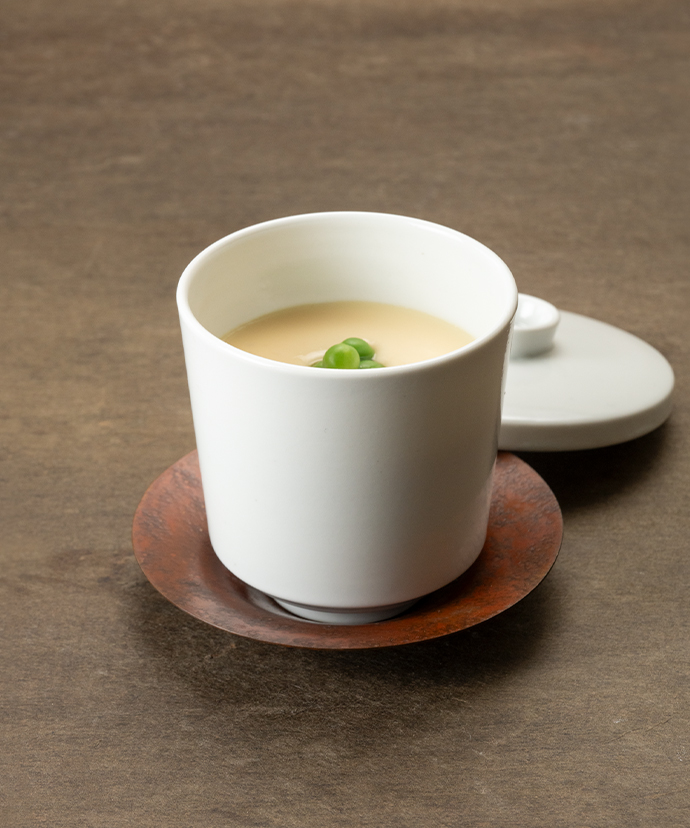 茶碗蒸しだけでなく、おもてなしの席を彩る器としても活躍します。たとえば夏は旬の野菜をすりながしにしても。