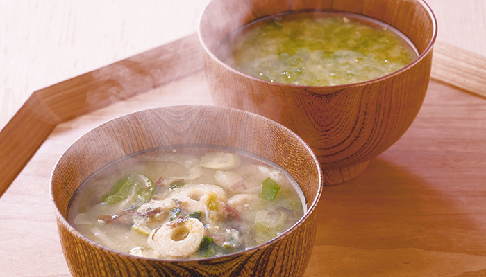 だし、味噌、具材の相性にこだわった味噌汁や、野菜だしベースの洋風スープなど、多彩な味わいが揃いました。お好みやお料理に合わせてお選びください。