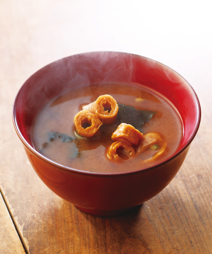 【麩とわかめの赤だし】:1食(標準10.2g) 当たり 熱量37kcal、たん白質2.58g、脂質0.89g、炭水化物4.65g、食塩相当量1.67g