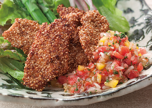 鶏のささみの胡麻風味 サルサソース添え
